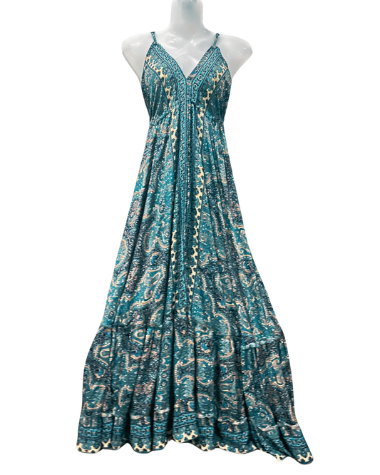 Pastel Coral & Sky Blue Printed Boho Maxi Dress