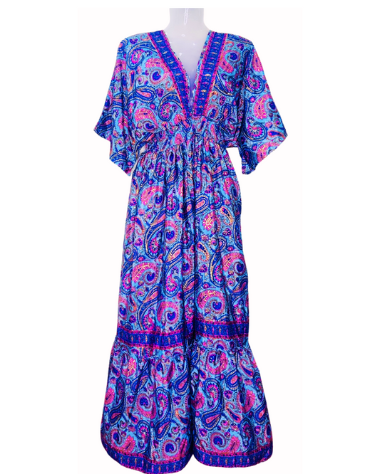 Ivory Paisley Cotton Kaftan Gown with Inner Lining