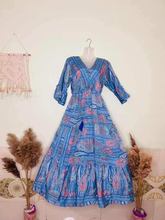 Blue Silk Kaftan with Back Tie – Flowy Yet Flattering 💙