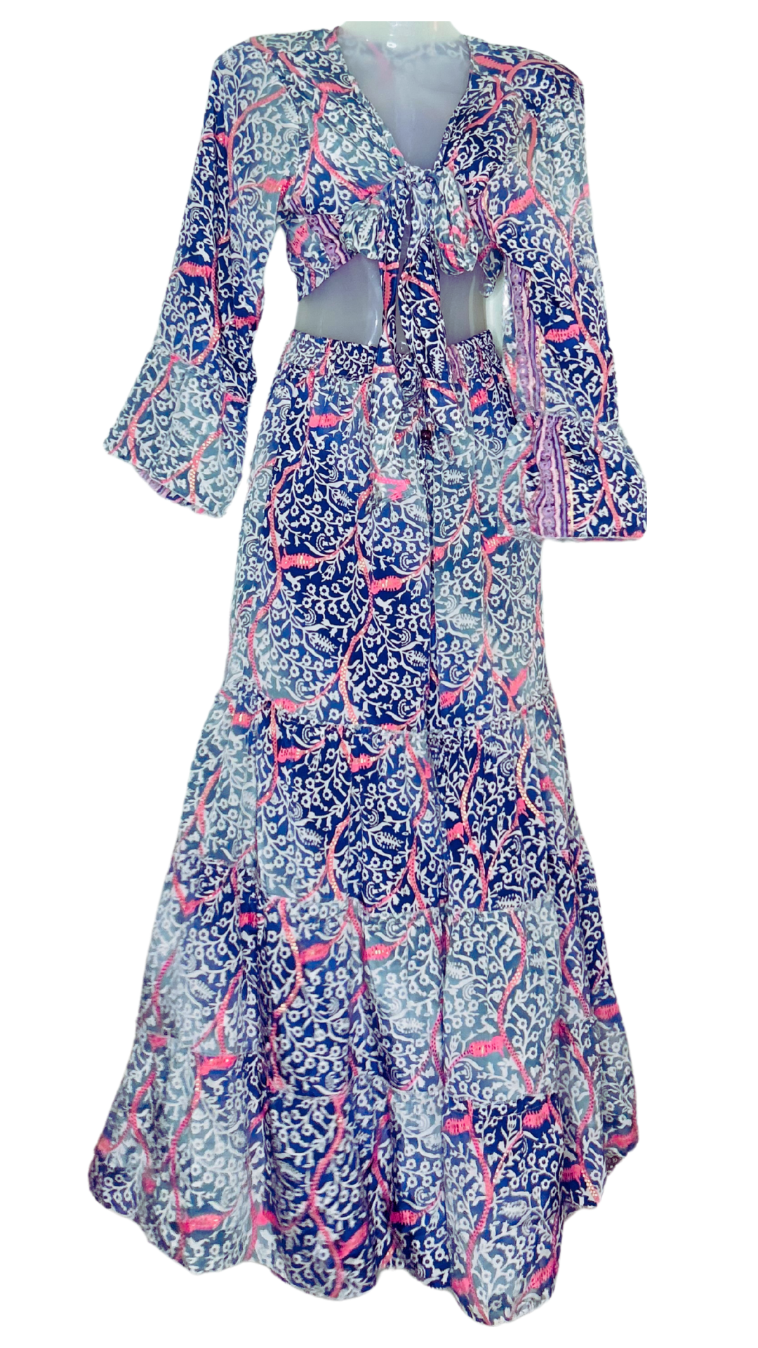 Turn heads in this elegant Monochrome Muse set – a flowy tie-up style top paired with coordinated wide-legged palazzo pants. Crafted in soft art silk, the outfit showcases a timeless black and white palette adorned with subtle prints for a hint of edge. Perfect for both casual brunches and festive evenings, this look brings effortless style with maximum comfort.