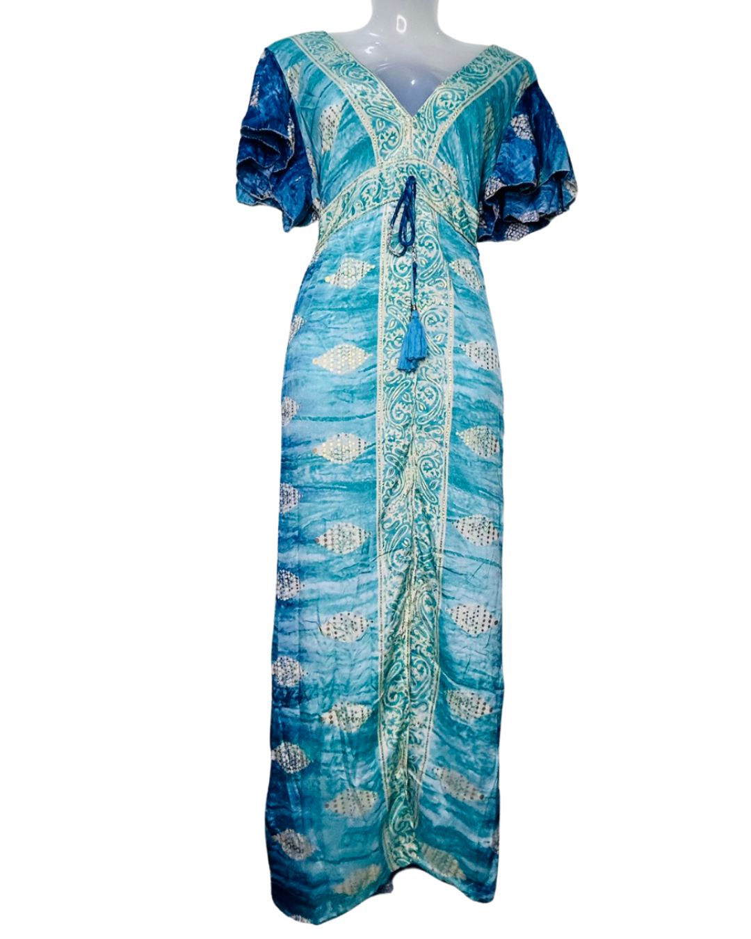 Float through your day in the effortless charm of our Silken Drift gown – made from feather-light soft silk that feels like a second skin. Designed for comfort and movement, it features slits in the front and on both sides, adding a touch of flair to your every step. Whether you're lounging, brunching, or vacationing, this gown is your go-to for laid-back luxury.